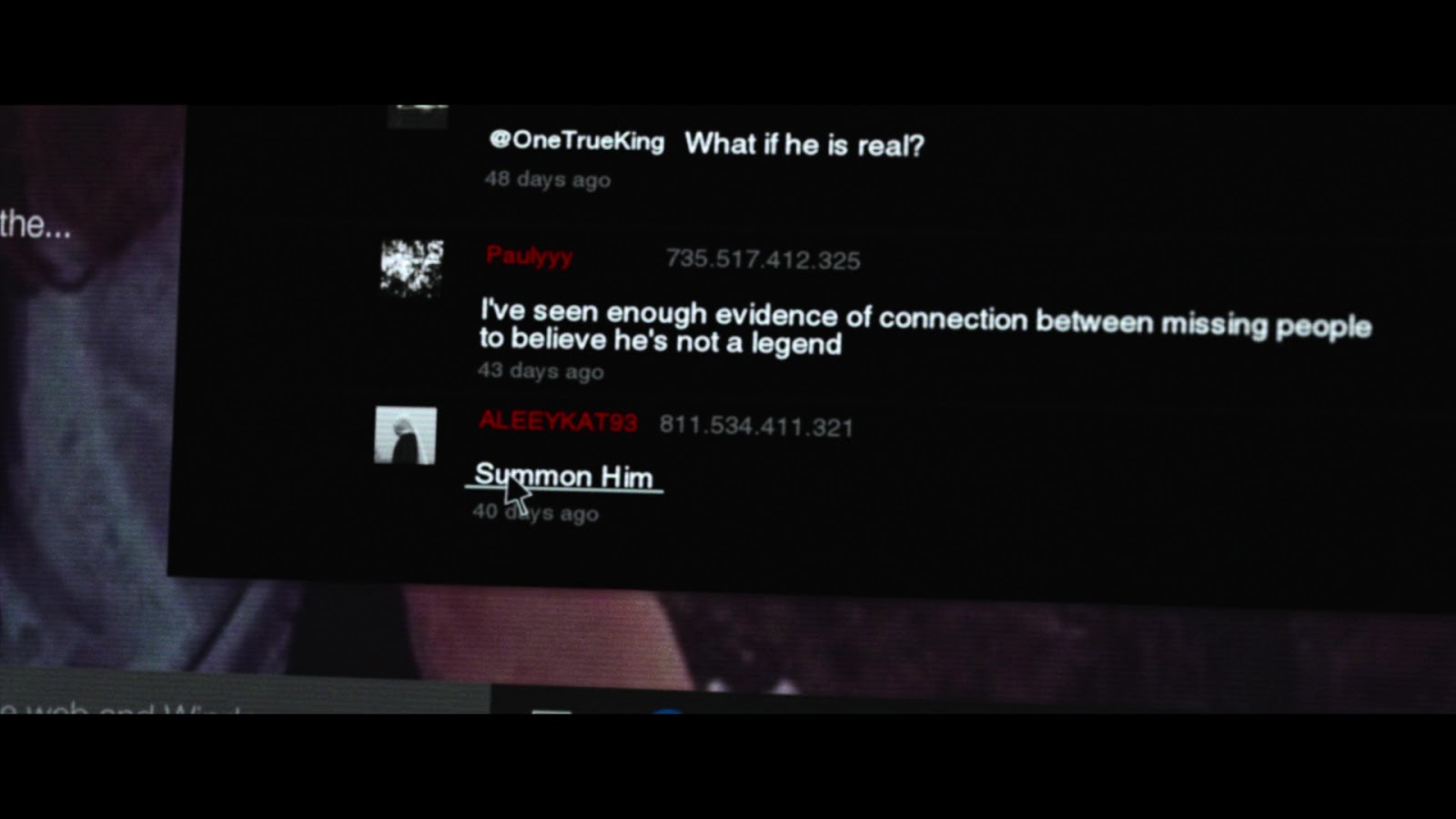 “El hombre más pálido. El traje más oscuro. Más grande que el gigante más alto. Ten miedo de este hombre: Slender Man ya que puede hacer lo que nadie puede”. Estas son algunas de las características que usuarios del internet dieron al personaje ficticio de terror Slender Man (el hombre delgado). Ahora la criatura llega a la gran pantalla con este film de terror, que nace de una de las leyendas urbanas de la web más populares, en base de una recopilación de imágenes en el foro Something Awful y, hoy en día, pertenece a la cultura «creepypasta».